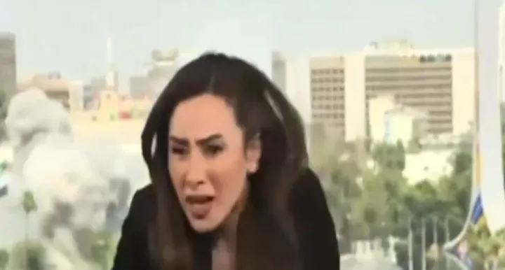 İşgalci İsrail’in Şam’a yaptığı saldırı bölgeye yayın yapan bir televizyon kanalının canlı yayınına yansıdı. Görüntülerde sunucunun yayın yaptığı esnada Genelkurmay Karargahı’nın vurulduğu ve sunucunun paniklediği görülüyor.