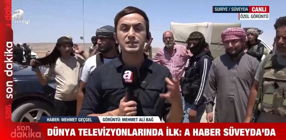 Geçgeli “Gerilimin merkezi olan Süveyda’da kontrol noktası üzerindeyiz. Şu anda İsrail’in İHA’ları burada uçuş yapıyor. Saldırı uyarısı yapıldı ve bizde kontrol noktasından uzaklaştık.” ifadelerini kullandı.