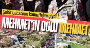Şehidin eşi ve çocuğu Aykut’un askeri kamuflajını giydi