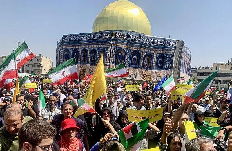 İran’ın başkenti Tahran’da halk cuma namazının ardından İsrail’i protesto etmek için sokaklara döküldü.