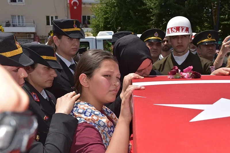 Şehit olan Uzman Çavuş Ümit Üzüm (37), memleketi Kayseri’de toprağa verildi. Şehit Üzüm’ün kızı Ayşe Mina (9) babasının tabutuna elindeki oyuncağı ile gelerek gözyaşı döktü.