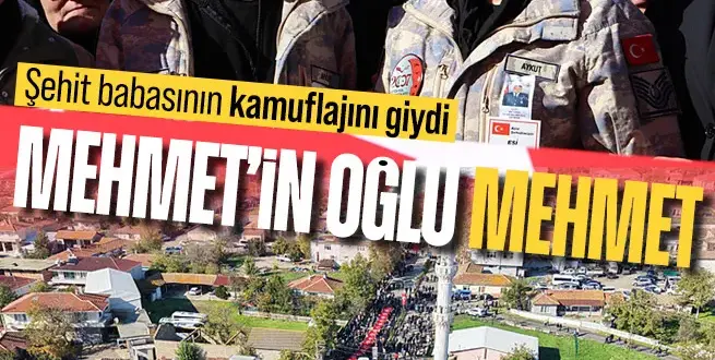 Şehidin eşi ve çocuğu Aykut’un askeri kamuflajını giydi.