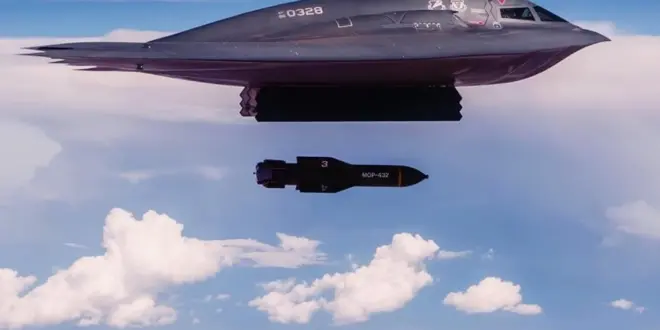 B-2 Bombardıman uçağı, yüksek değere sahip, genellikle ağır savunulan hedefleri vurmak üzere tasarlanmış olup 18,144 kilogram cephane taşıyabilmektedir.